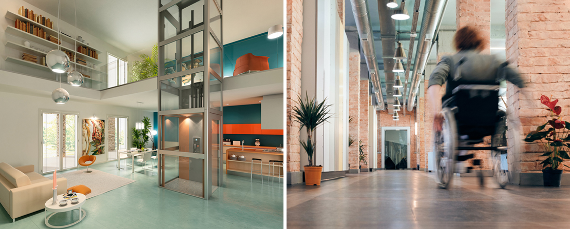 - Platform lift or equal inclusive structure with clear glass infill panels and glazed access doors. 1100x1400mm platform. 70mm recess required. Finishes from standard range.