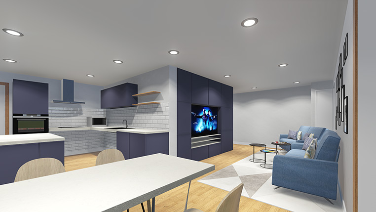 Assistive technology and being digitally Connected play a big part in this as does the contemporary layout of the property using open plan features to provide a living/dining area with ease of access to the kitchen. Ultimately the area allows for the engagement with the neighbourhood and community.