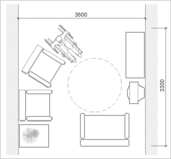 - Space for an occasional table approx. 600x800mm